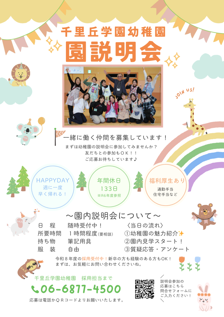 令和8年度就職希望者向けの園説明会を、随時受け付けておりますので、お気軽にお申込みください!